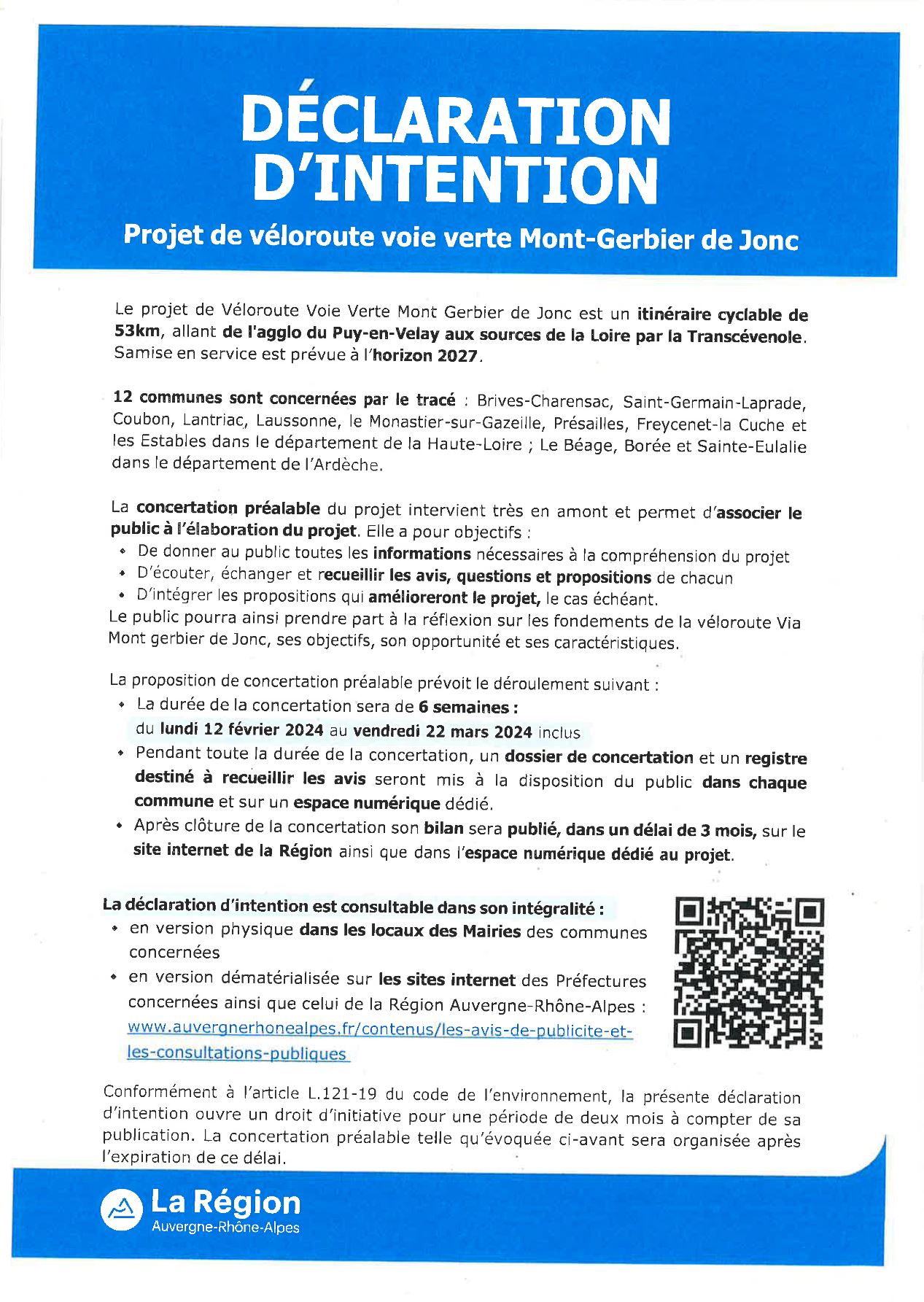 Vous êtes ici : Accueil > Concertation préalable projet véloroute voie verte Mont Gerbier de Jonc