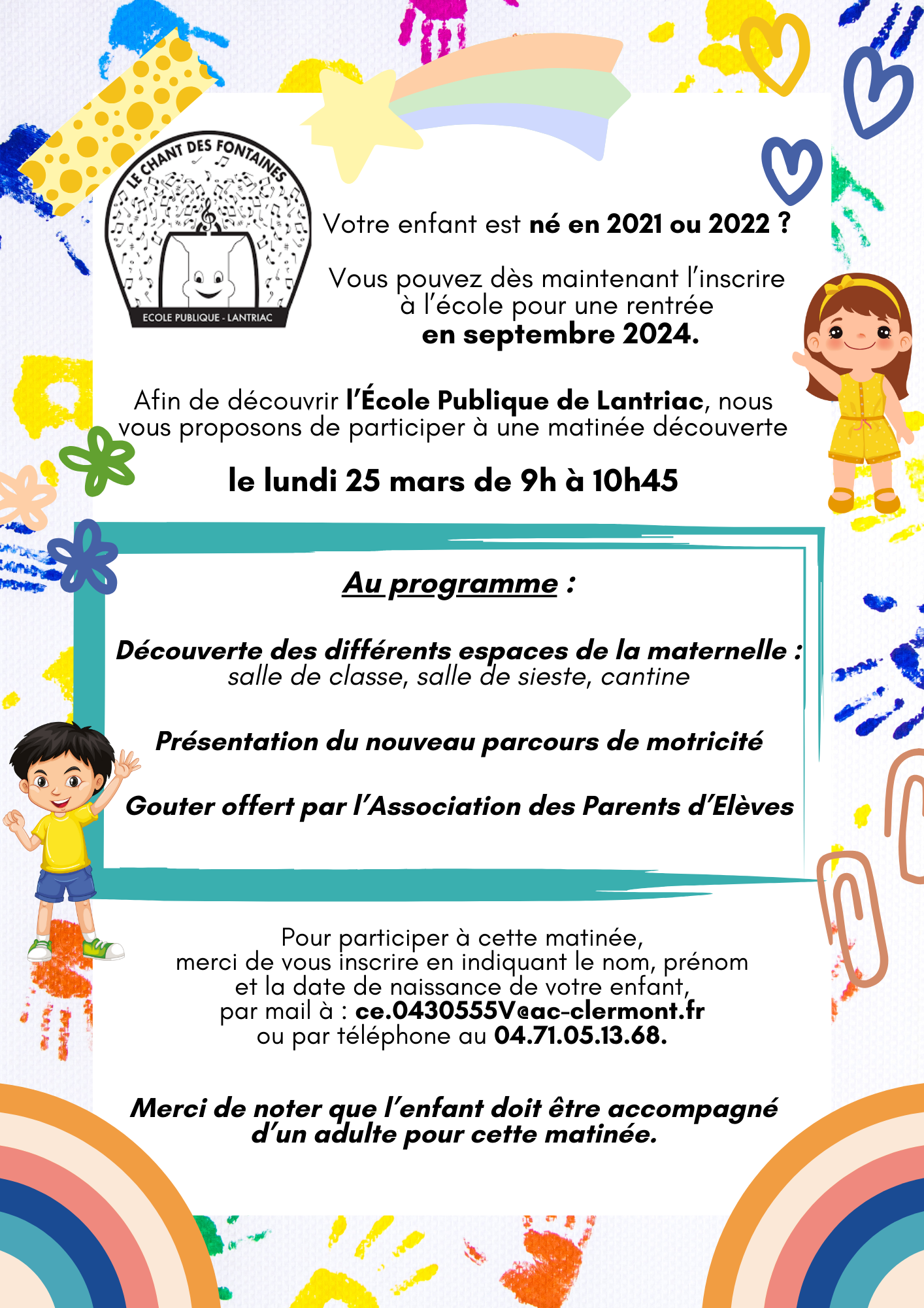 Vous êtes ici : Accueil > Matinée découverte à l'école publique de Lantriac