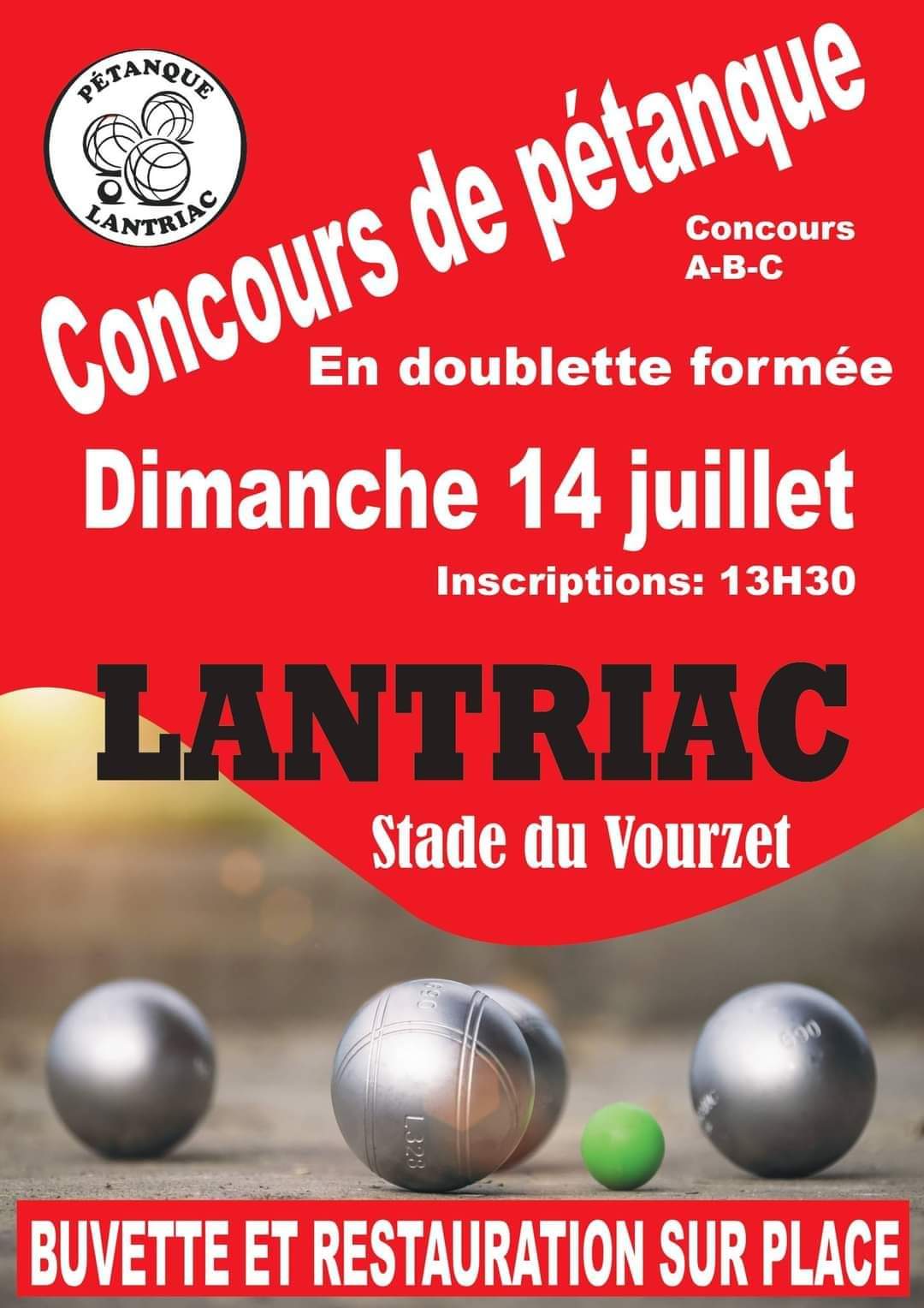 - le week-end du 9 août → concours de pétanque de la vogue lantriacoise