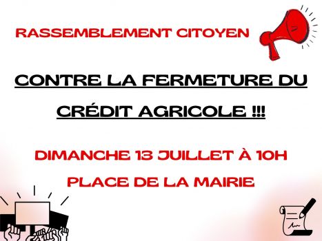 Vous êtes ici : Accueil > Rassemblement Citoyen - Contre la fermeture du Crédit Agricole