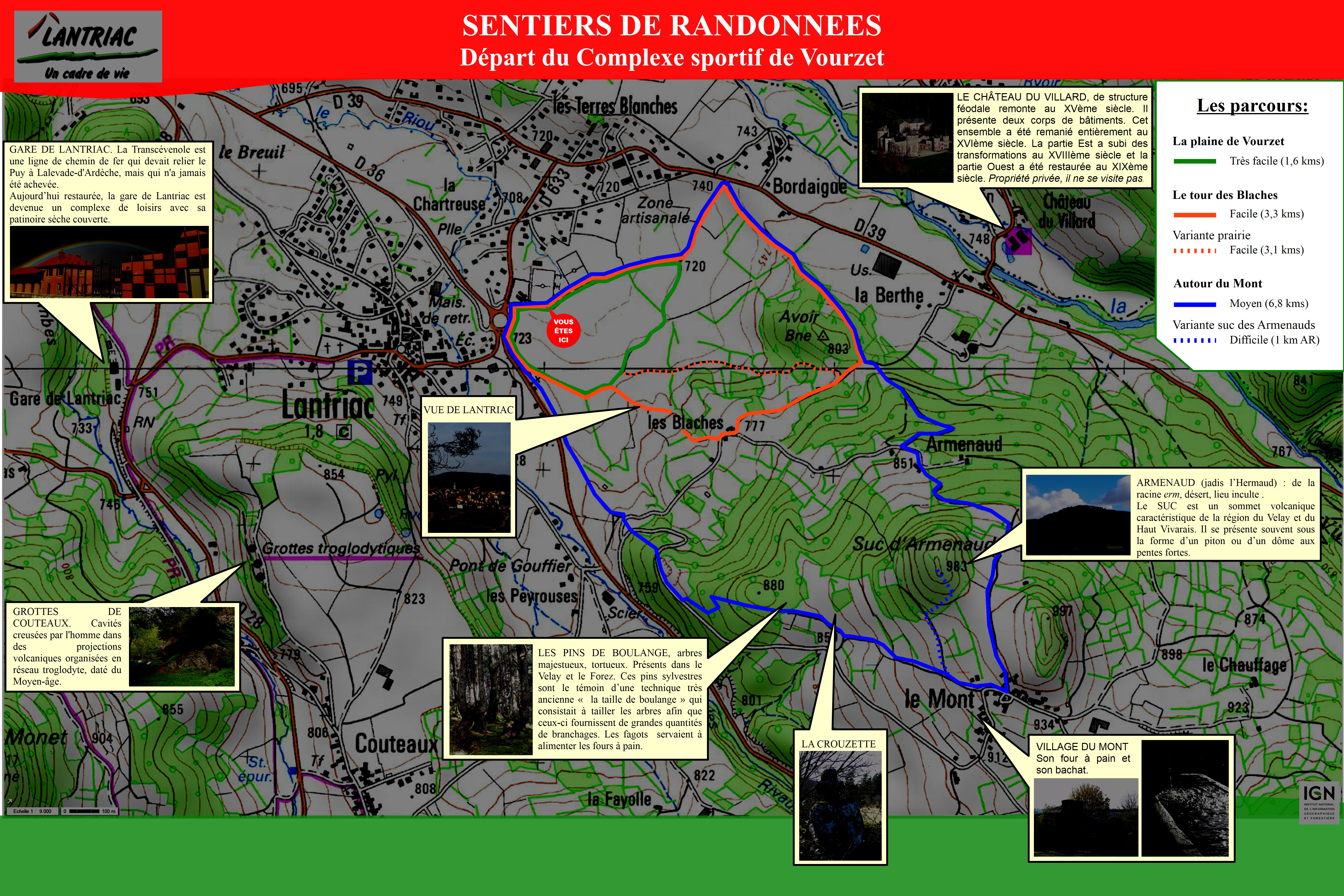 En partant du stade, vous avez la possibilité d'effectuer 3 chemins de randonnées (voir plan ci dessous).